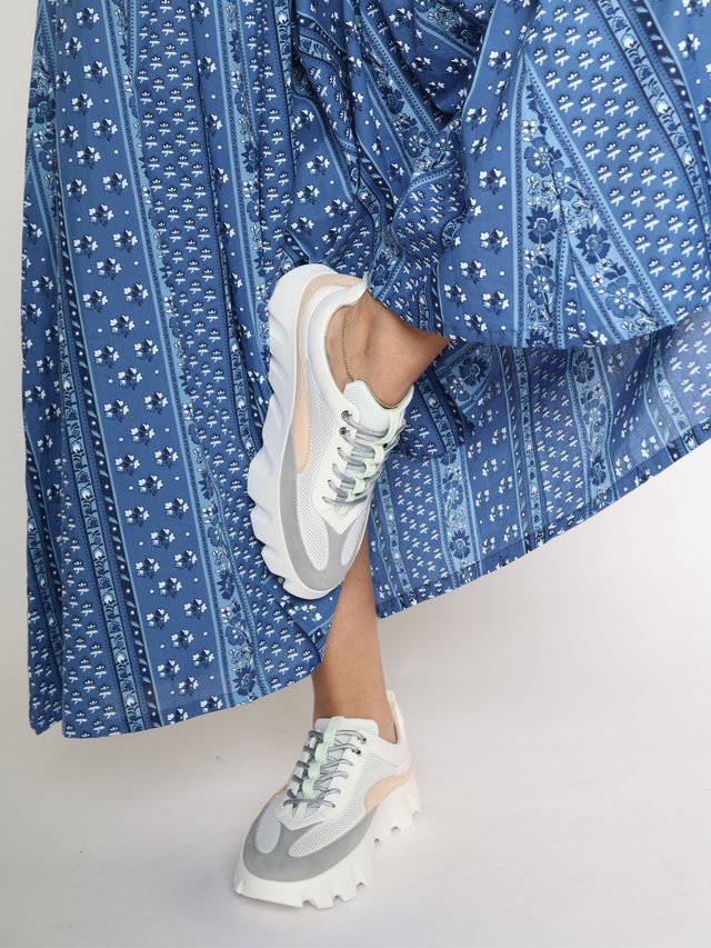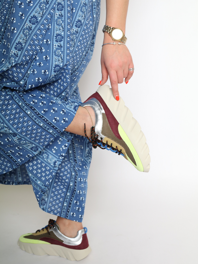 This look is basically dopamine dressing, bottled. Saturated brights meet playful proportions in a set that refuses to whisper. The abstract print brings bold, artful energy up top, balanced by airy, soft pink trousers that move like a breeze. It’s equal parts statement and ease — polished enough for creative meetings, relaxed enough for coffee that turns into lunch.