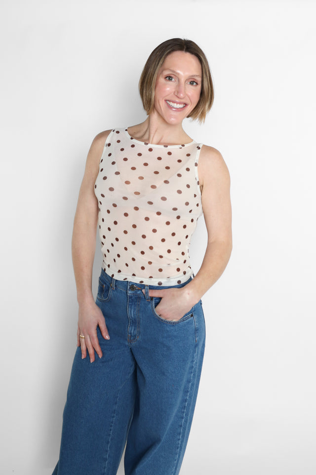 Betty Top Off White/ Brown Dots